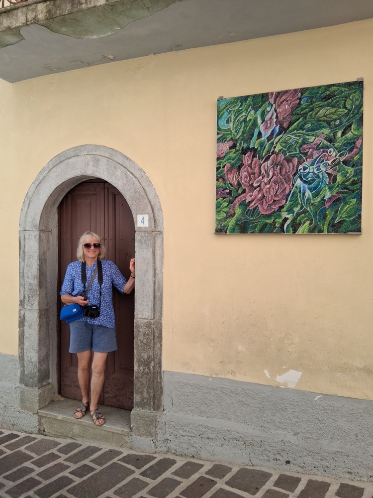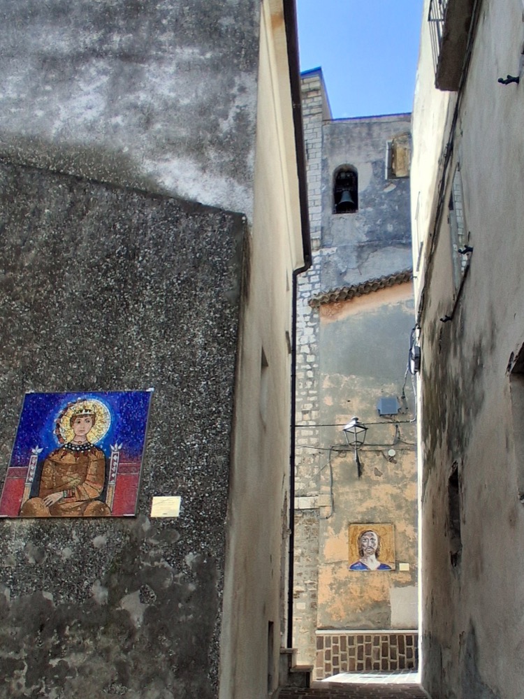 One warm day in September a lovely group and I spent a morning exploring this pretty little town. As we arrived, the sun was shining brightly and the first thing we saw on the wall of a house was a beautiful mosaic glittering golden in the sunshine. It was the first of around 100 scattered around the town on the fronts of houses, walls, and churches. With our lovely guide, we learned of the “A Mosaic for Tornareccio” project, where many great artists take part in an annual competition to enter a piece of art that is then sent to master artists in Ravenna to be completed as a mosaic. The townsfolk can apply to have a piece of this art history installed on their house, and each year a different lucky façade is chosen. We listened intently as the themes were explained, each with their own story to tell. The mosaics depict bees and the Queen with her honey, life stories, folklore, and religion, and they are all breathtaking with their intricate designs and small pieces of perfectly placed mosaic. Every nook and cranny of this pretty town has a mosaic on show; it truly is an open-air museum of beauty.