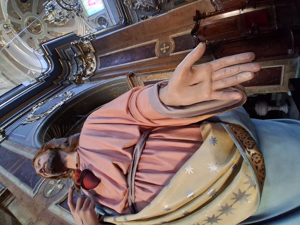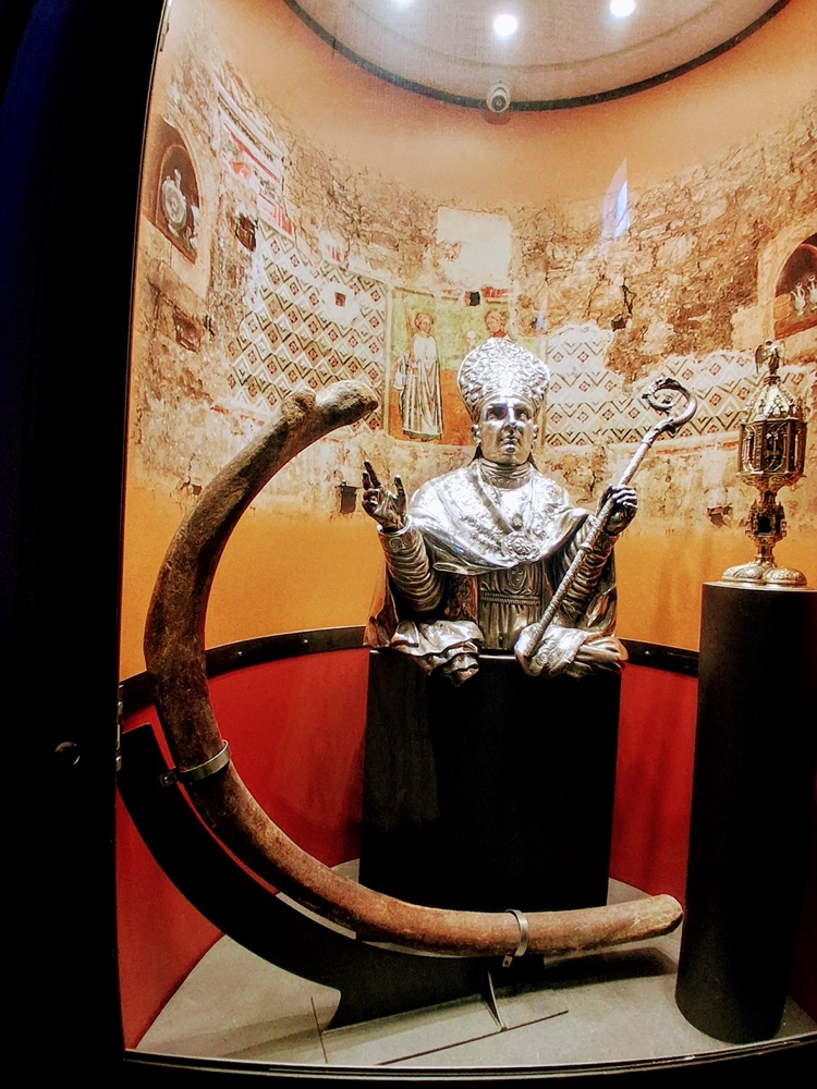 With Anna Pia, a historian, professor, and expert in Atessa’s history, we set out for a day of discovery and adventure starting at the Cathedral of San Leucio. Here, on the high steps outside the cathedral, we learned the legend of the town. San Leucio, Bishop of Brindisi, conquered and killed a dragon that was terrorising the two towns of Ate and Tixia, thus uniting them as one—known today as Atessa. After the slaying of the dragon, the saint donated its blood and a rib to the town as a reminder. These can be found today, impressively displayed inside the stunning cathedral, alongside intricate wood-carved choir stalls and a pulpit carved by master woodworker Mascio in 1935. During the restoration of the choir stalls, frescoes were discovered dating back to the 13th and 14th centuries—just some of the many treasures inside this fascinating cathedral.