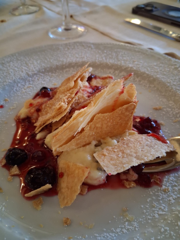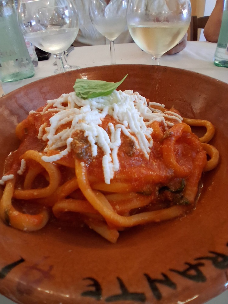 We meandered down the cobbled streets with breathtaking views toward the coast, heading to Il Duca, our destination for lunch. Along the way we stopped at the town’s famous Piretti shop, renowned for delicious torrone and liqueurs. It would have been rude not to taste the delights: centerbe, ratafià, and limoncello—so we did. We left with shopping bags full and a promise to return for more. Lunch was a typical long and steady celebration of all things traditional and local: tasty cheeses and cured meats, the famous pasta alla chitarra served with a slow-cooked mutton sauce, more grilled meats to follow, seasonal vegetables, and roasted potatoes. We somehow managed to squeeze in a delicious semifreddo made with the Piretti torrone we had tasted earlier, and washed it all down with local wine and a digestivo to finish us off.