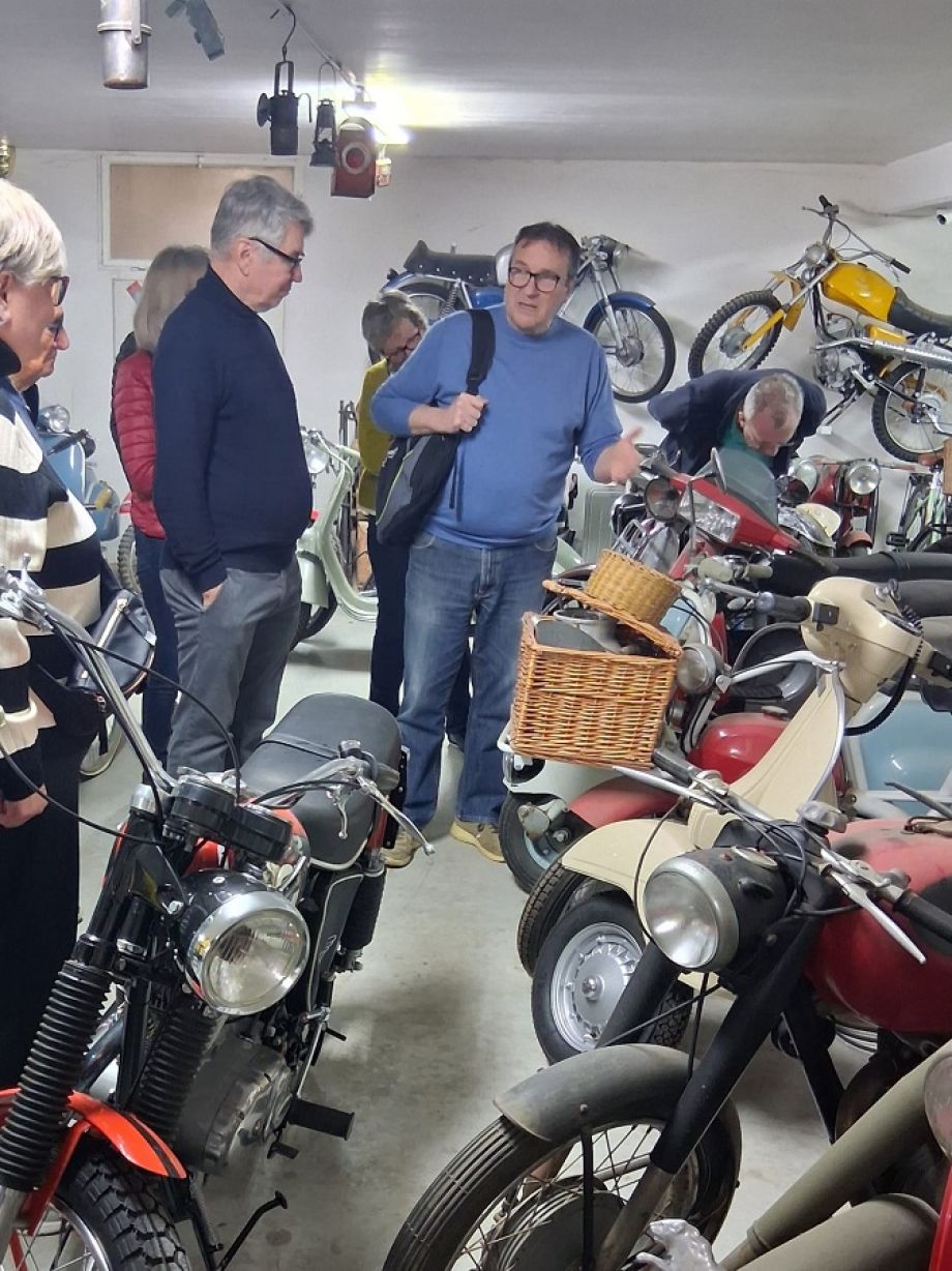 In a secret location 17 of us met and were absolutely overwhelmed with what we saw. The day was all about "Vintage on two wheels, and F1 wine". Our first stop was at a large private collection of motorvehicles, motorbikes and memorabilia spanning almost 100 years.
